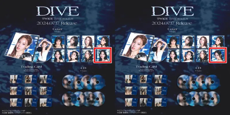 事緣 TWICE 將會在 7 月 17 日發行全新的日語專輯《DIVE》,日前就在官方 IG 上釋出了專輯的封面作宣傳。9 位成員本應有 9 個不同的封面,但 Mina 的照片卻重複出現了兩次,周子瑜的卻不見蹤影。
