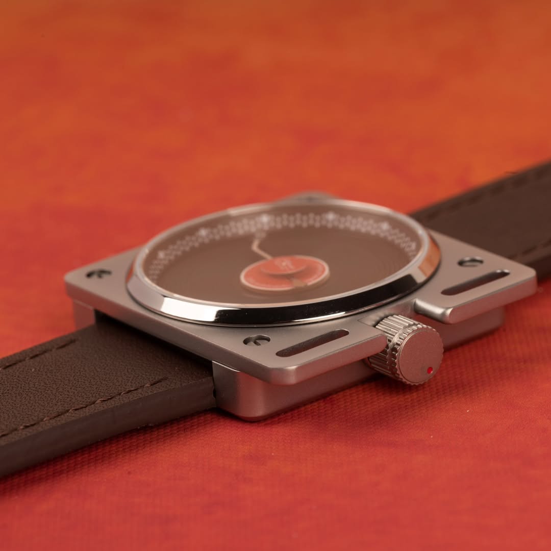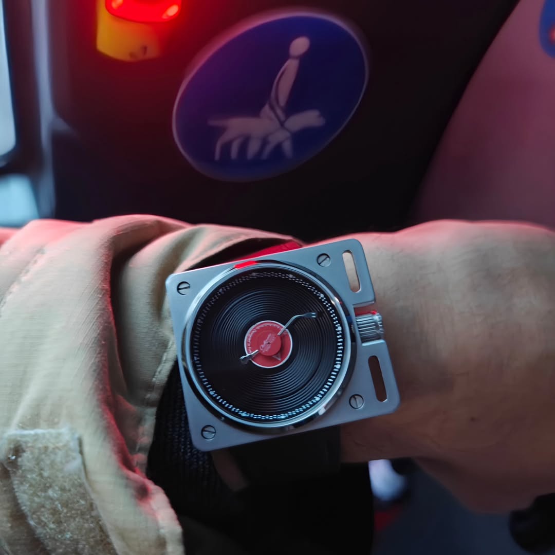 搭載來自日本的 Miyota 9039 高端自動機芯,以及 AAA 設計出獨特的「Chillmatic 黑膠唱片錶盤」,有著自行開發的 R-1 Mod 矩形錶殼,搭配模擬黑膠唱針形狀的指針,佩戴時彷彿黑膠唱片在手腕上旋轉播放,有趣又型格,是安藤悠的得意之作。