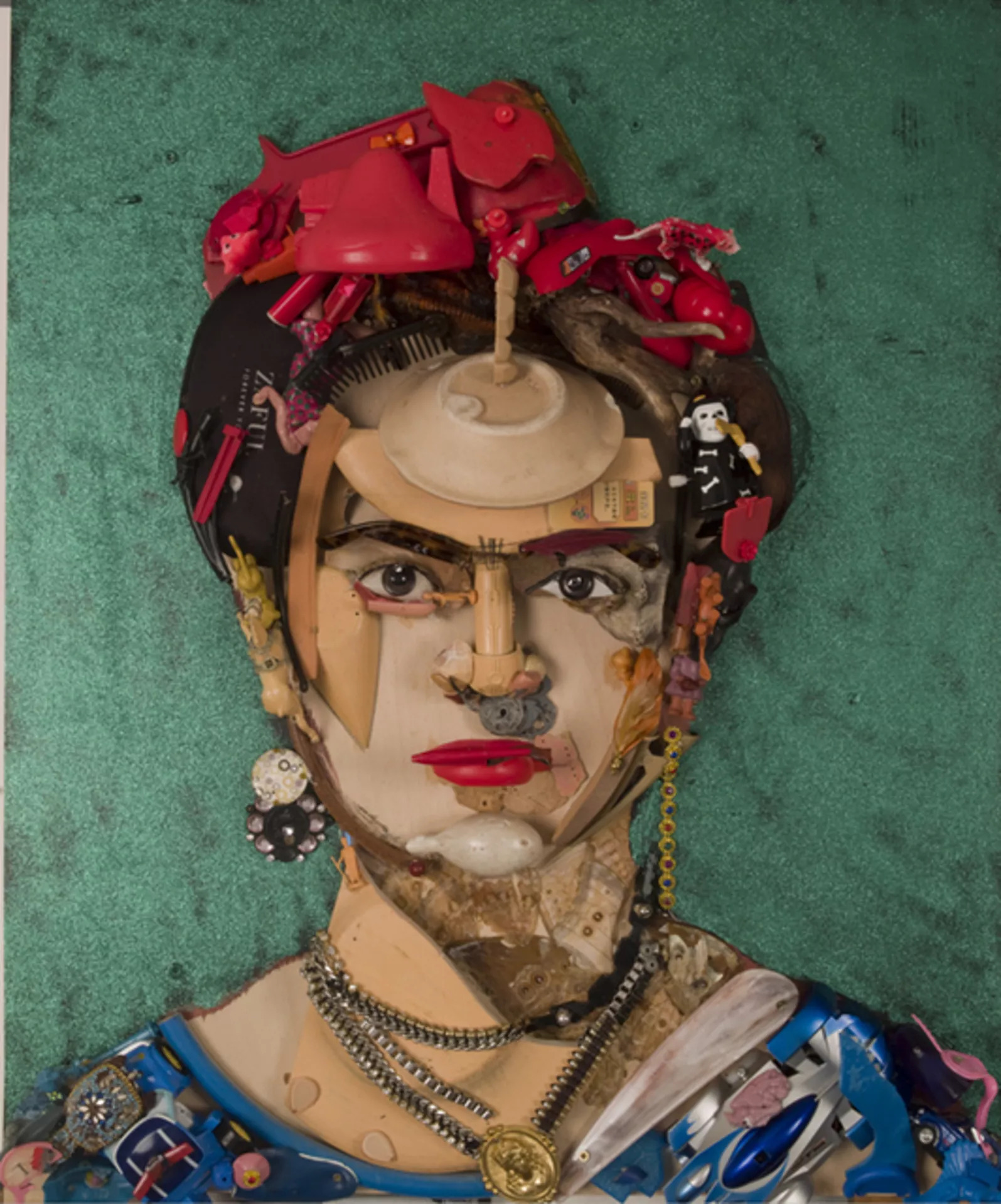 畫作裡看到的那些雜物都是故意的,Bernard 就是專用「垃圾」創作,除了能為作品增添更強烈的衝擊力,更是對表現對消費文化與環境議題的批判。對 Bernard 而言「垃圾是放錯位置的寶藏」,希望觀者能在觀賞作品時,也能反思這些物品來自哪裡?又為何出現在這裡?提醒大家珍惜所有、愛護地球。