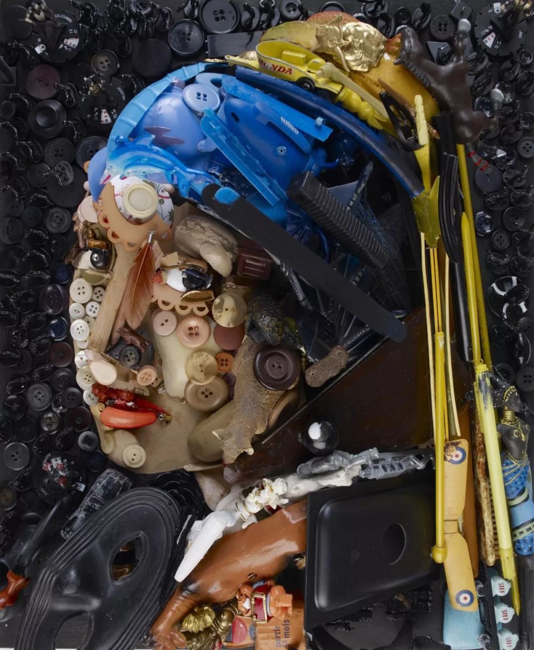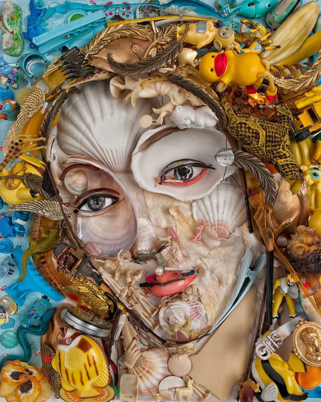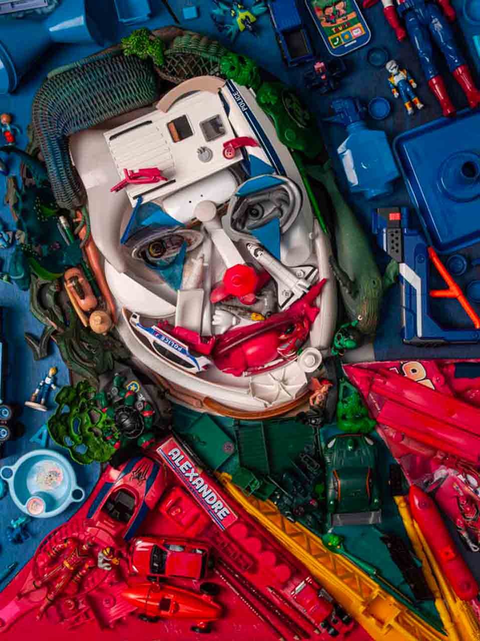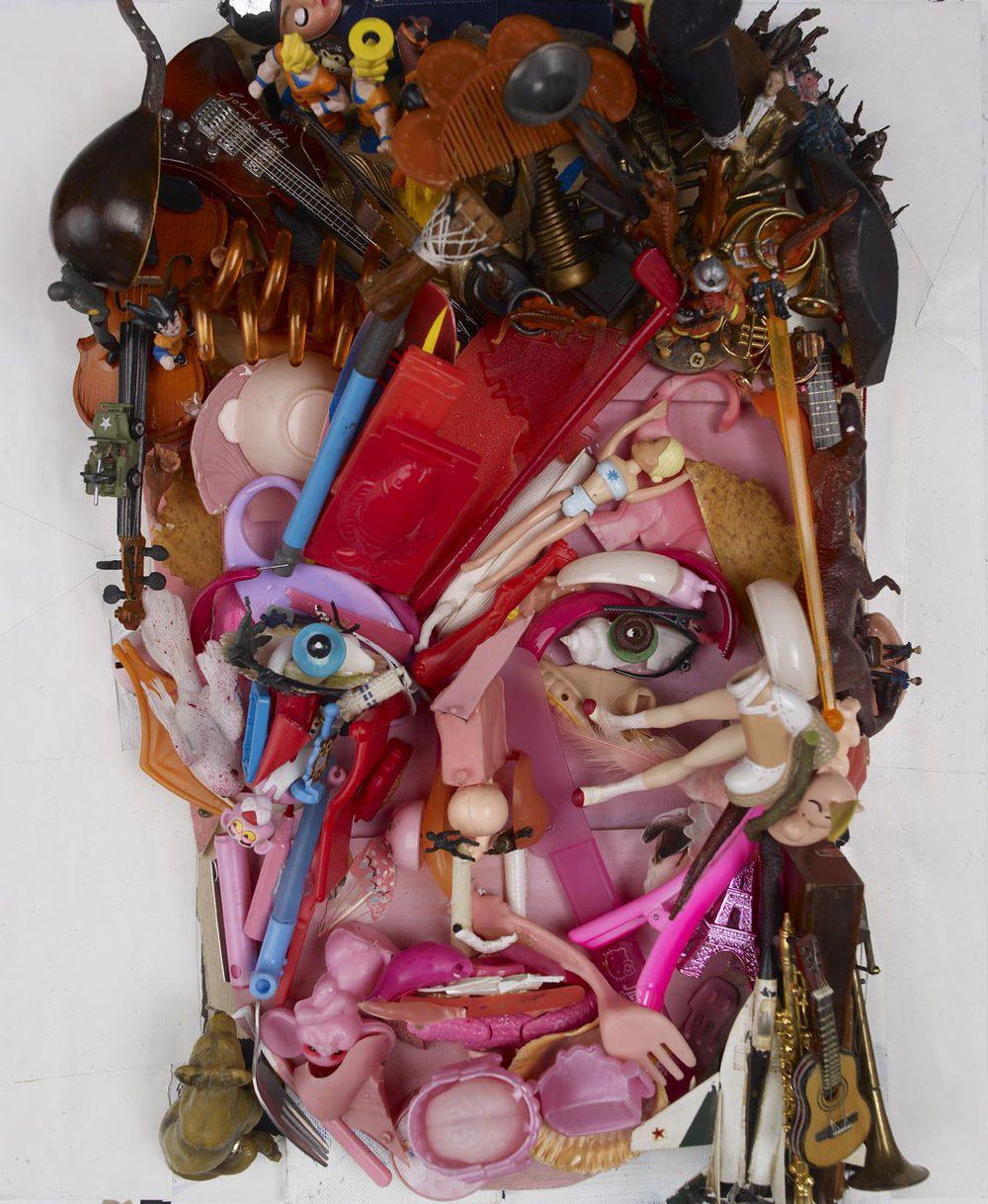 遠看是世界名畫與名人肖像,隨著一步步走近,畫面中的細節逐漸崩解,你會看見用鞋子、塑膠瓶、玩具組成的臉;報紙堆成的光影;毛巾組成的身體,每一個角度都是驚喜,讓人不得不佩服 Bernard 強大的解構能力和創意。