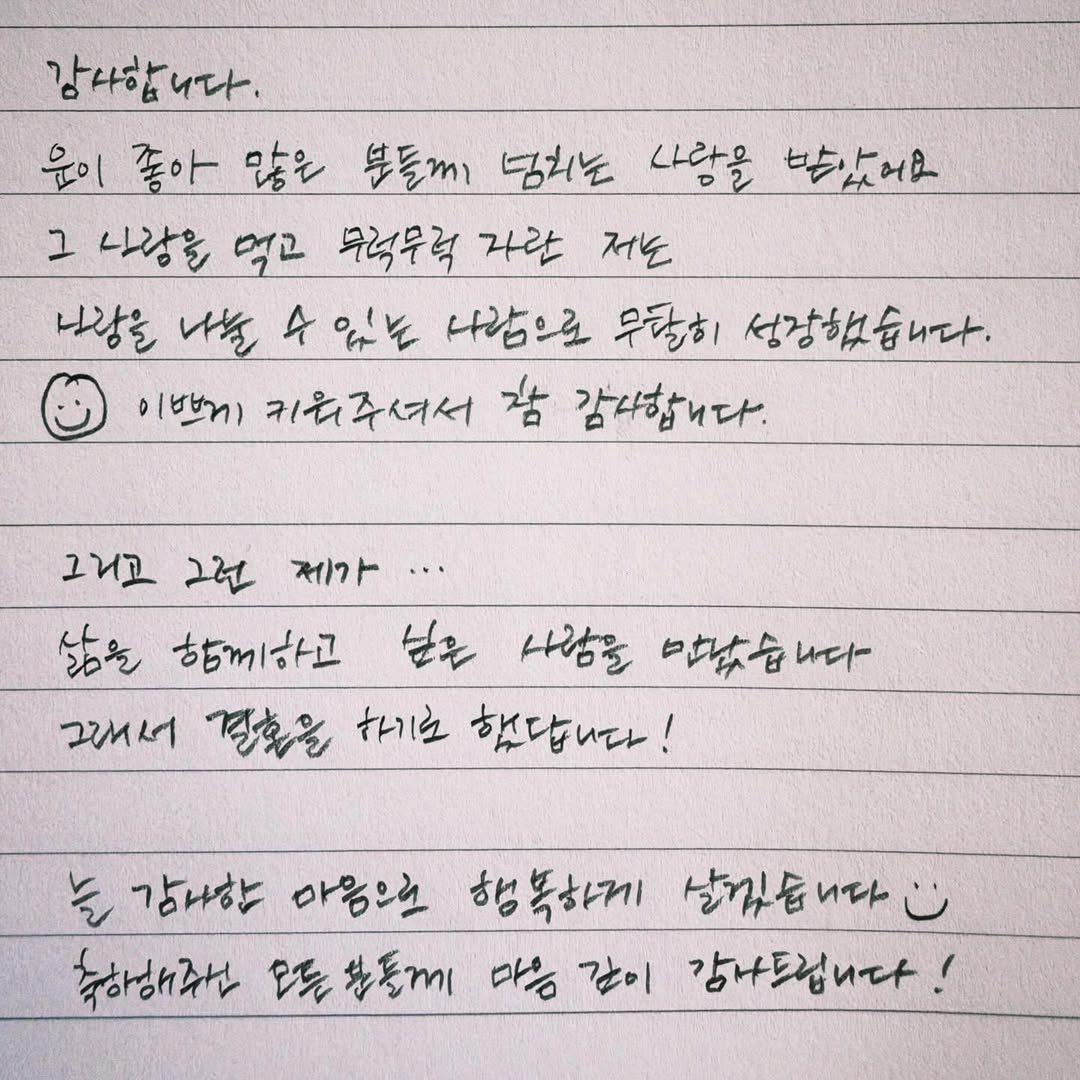 去年 6 月,Hani 在個人 IG 分享要結婚的好消息,以親筆信寫下「遇到了想一起生活的人,所以決定結婚了。」一字一句都充滿著對婚姻與未來的期盼,光是看文字都能感受到她的快樂。