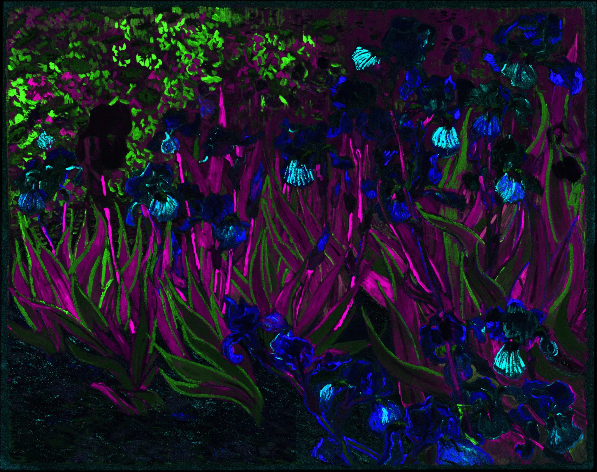 若從梵谷的用色習慣中分析,會使用紫色畫鳶尾花也是合理的。