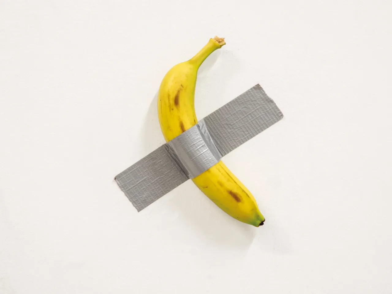 《The Comedian》(喜劇演員)在 2019 年首次於邁阿密巴塞爾藝術展亮相時,立刻因為「太荒謬」引發全球關注,三件限量版分別以 12 萬至 15 萬美元售出,現在更是價值數百萬美元,說它是全球最紅(或最貴)的香蕉也不為過。
