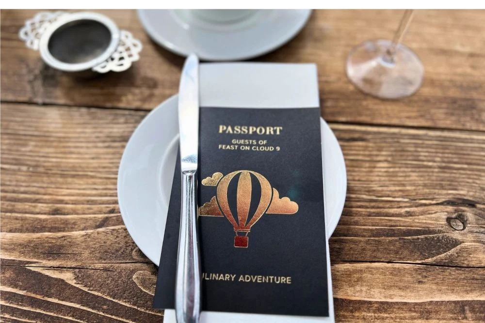 如果天候不佳,會移往備有熱氣球景觀的室內用餐,用另一個角度感受熱氣球餐桌的樂趣。另外,現場還提供復古風格的護照、拍立得相機和溫暖毛毯,讓你帶走滿滿的紀念品,在熱氣球下邊吃邊玩,吃一頓晚餐身心靈都快樂了。