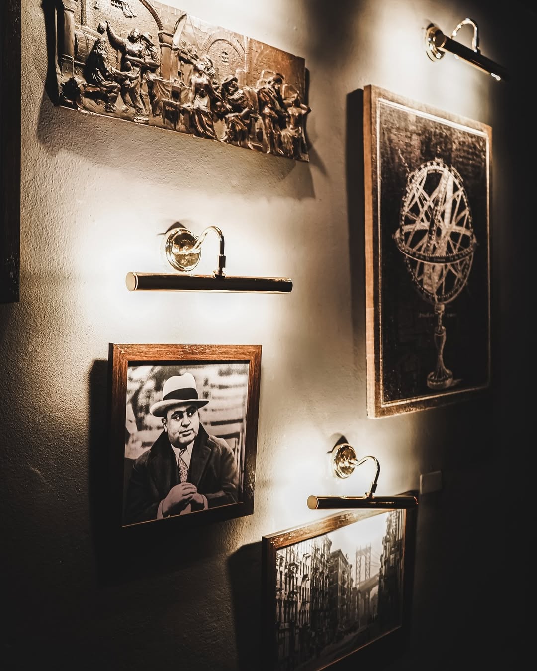牆壁上還掛有美國黑幫人物照片,酒單也是以美國黑幫為主題,黑白設計像極了通緝犯的懸賞海報,據說每一款調酒都很浮誇華麗,最推薦雞尾酒。