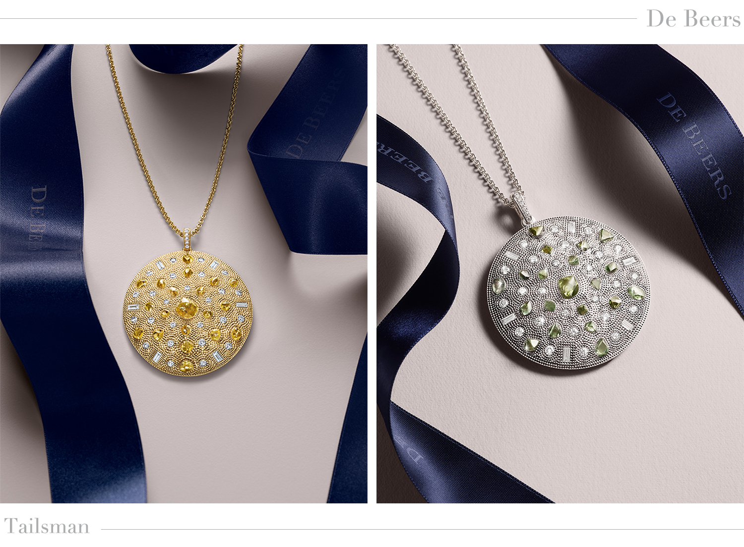 Tailsman 系列設計亦呈現了歷史上鑽石被視為護身符的特性,將鑽石原石的野性、拋光白鑽與彩鑽的純淨,透過各種排列組成各種別具意義的圖騰,在肌理之中發掘蘊藏於遠古的美與力量。