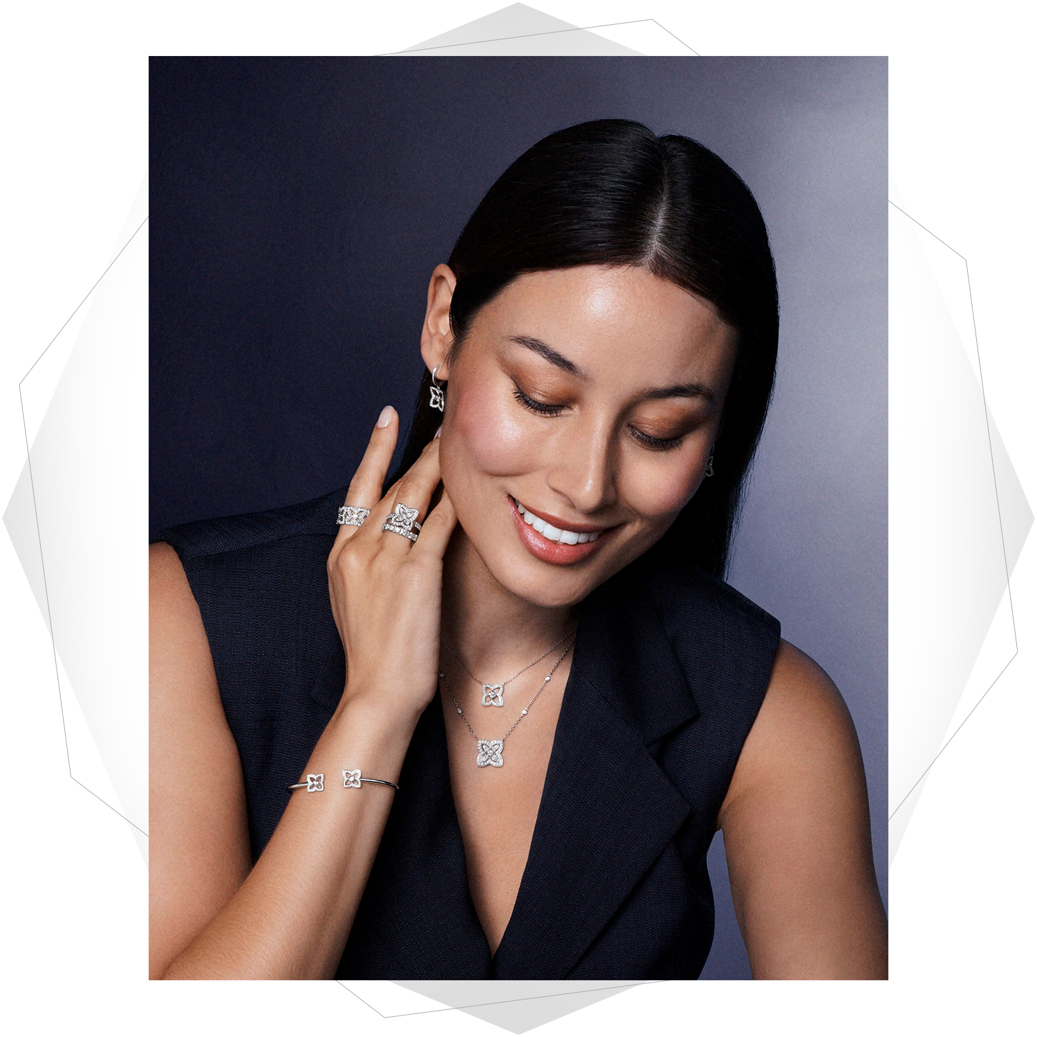 黎明時,蓮花總會在黑夜之後優雅甦醒,這樣的覺醒與蛻變,總能帶給人們內心無限的希望。Enchanted Lotus Bloom 系列亦帶來各式耳環設計,耳際間閃爍的珠寶,令配戴者每一個舉手投足之間都被光芒照耀著;而蓮花層層重複盛放的戒指款式,則展現出蓮花的大美不言。