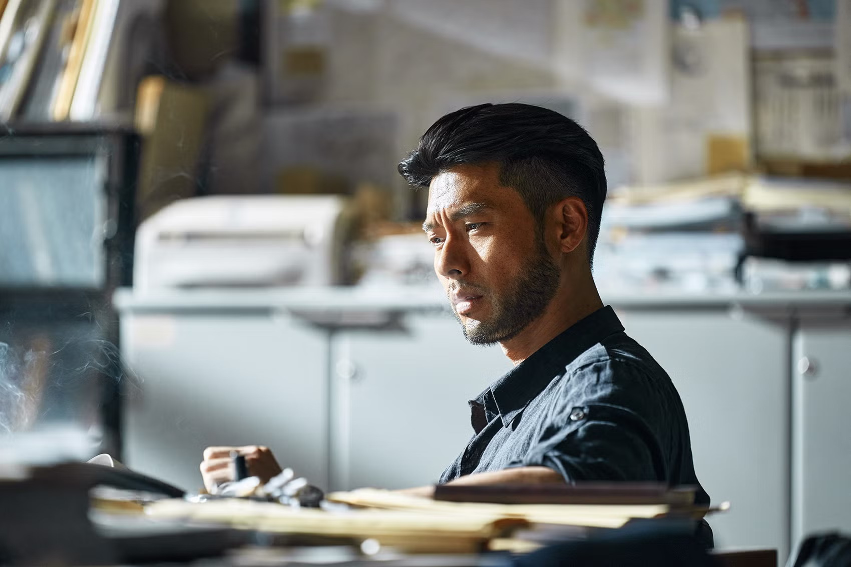 最近跟鄭雨盛合作的 Disney+韓劇《韓國製造》,他梳油頭,穿西裝,眼神銳利,飾演一名夢想登上權力與富裕頂端的男人,白天是情報局特工,晚上則是生意人,有些黑化的人設讓人非常期待玄彬的演技突破。