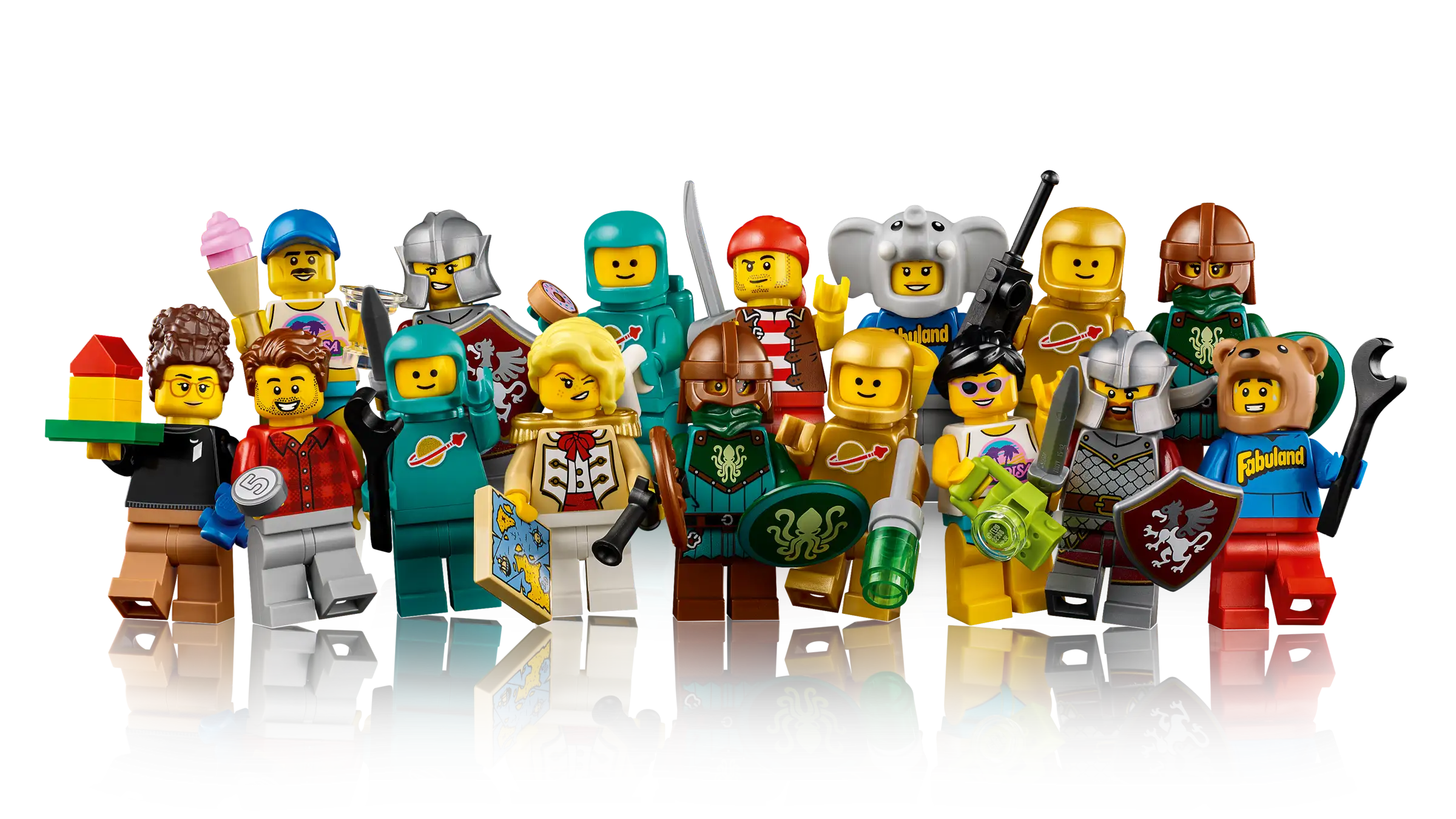 扭蛋機最重要的扭蛋當然也是重要亮點,這回一次給到 16 隻樂高人偶,有各種經典樂高主題裡的代表性角色,像是 Castle (城堡系列)的中世紀騎士、Classic Space(經典太空系列)的太空人、Paradisa(天堂樂園系列)的渡假女孩、Fabuland(妙妙鎮系列)的動物裝扮角色等。