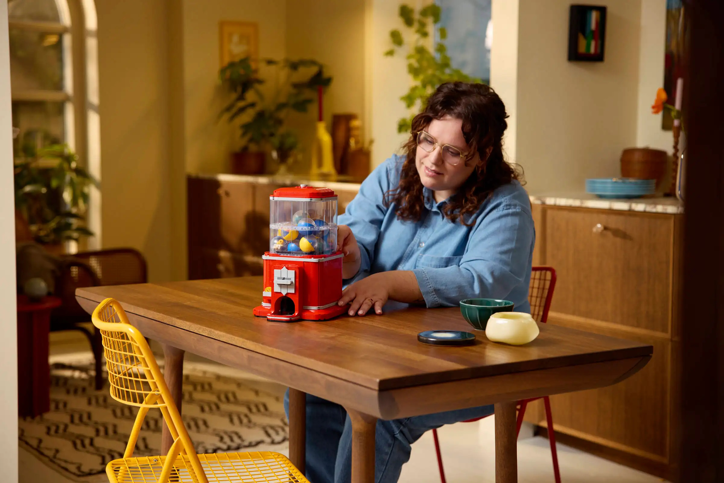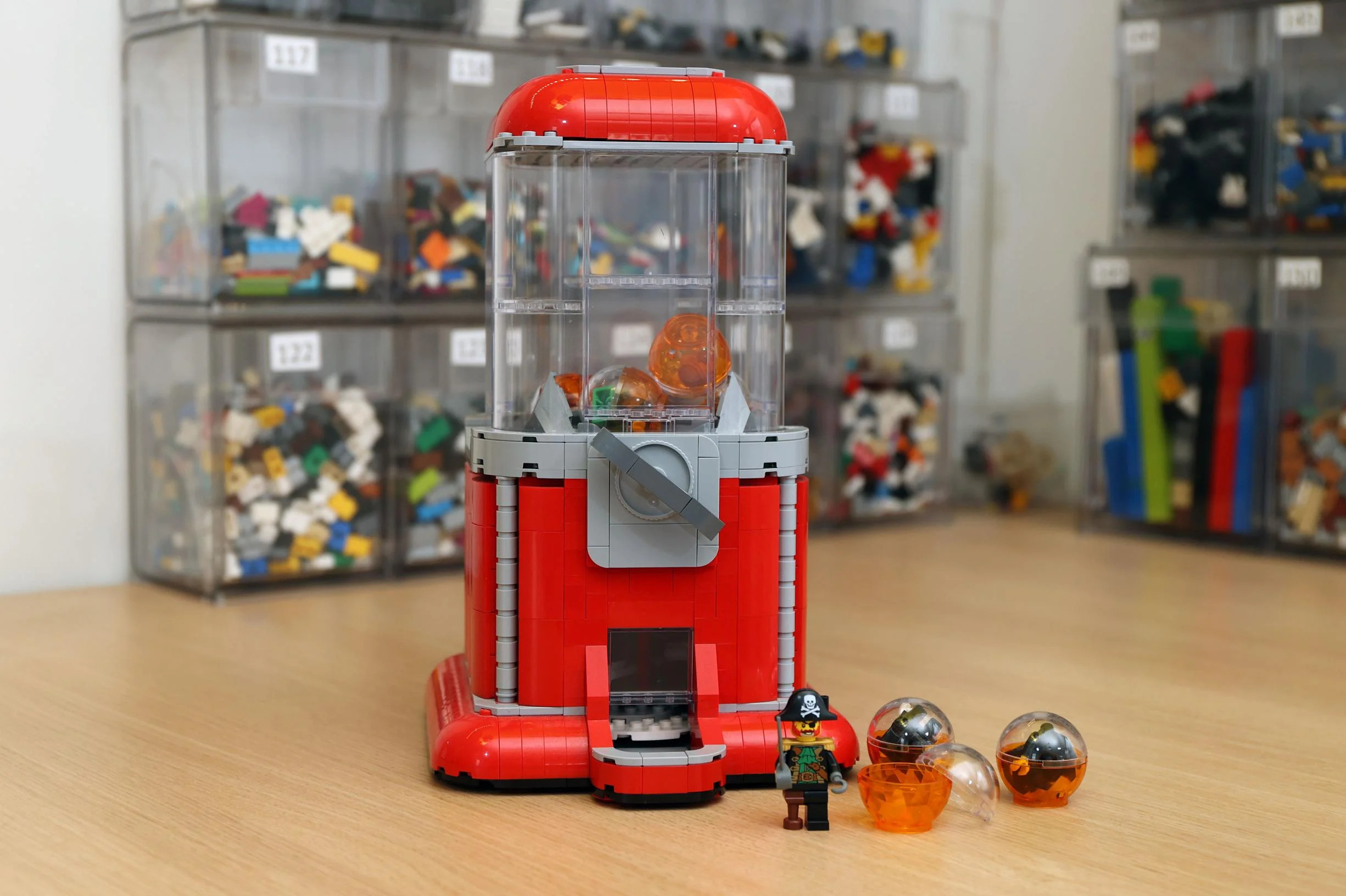 更重要的是,Minifigure Vending Machine 不只是擺拍,而是真的能玩起來。投入樂高硬幣後轉動把手,能看見扭蛋轉動的過程,在機器掉出扭蛋後,拆開膠囊,組裝出各種經典的樂高人偶。