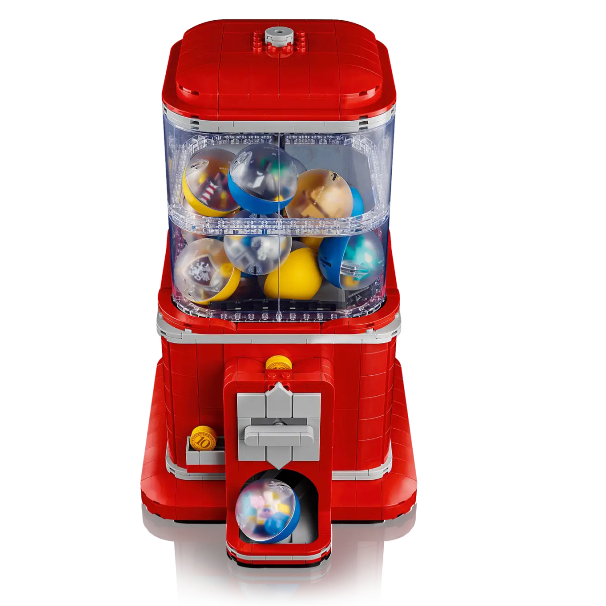 官方版本則來到 1343 個零件,延續原先紅灰配色的復古外觀,但在細節的刻畫上更加精緻。像是新增投幣孔和退幣孔、頂部蓋子的卡楯,並使用霧面透明零件讓整體更顯質感。