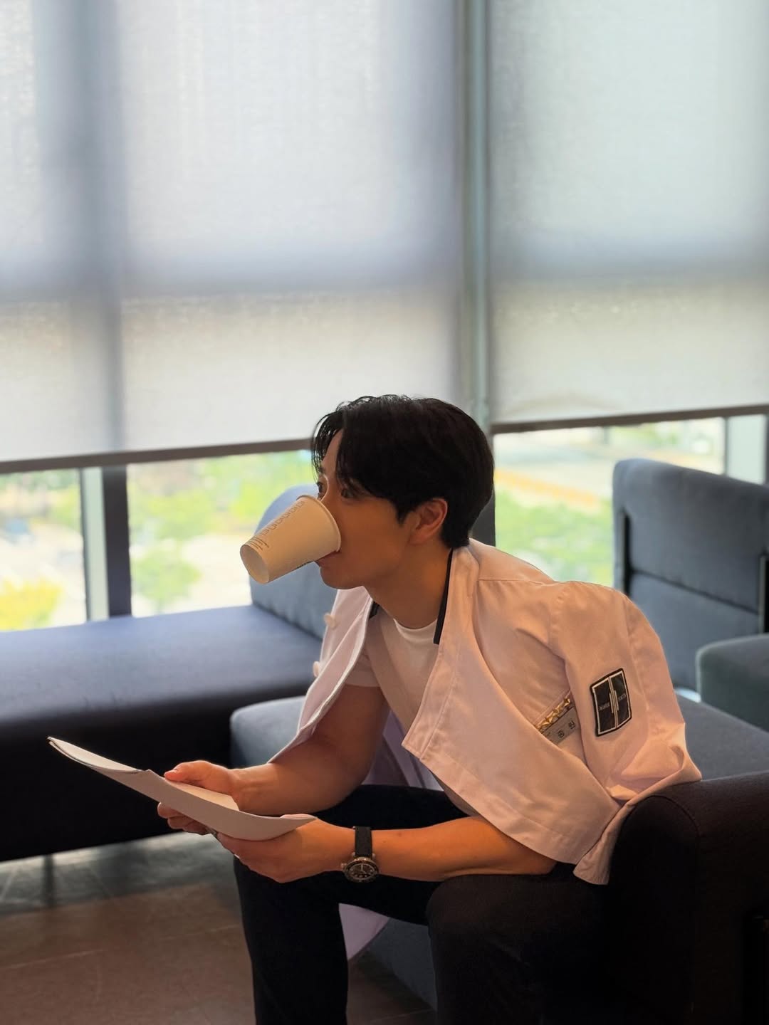 孫鍾元很像料理韓劇會出現的男主角,切菜時有種安靜的可靠感,每個步驟都不馬虎,但走出廚房,卻像個親人的犬系男友,留著一頭黑色中分短髮,穿著時尚,與人對話時的眼神乾淨清澈,調皮起來時就刁著紙杯拍照,有專業又認真生活的男人,很難不為他著迷。