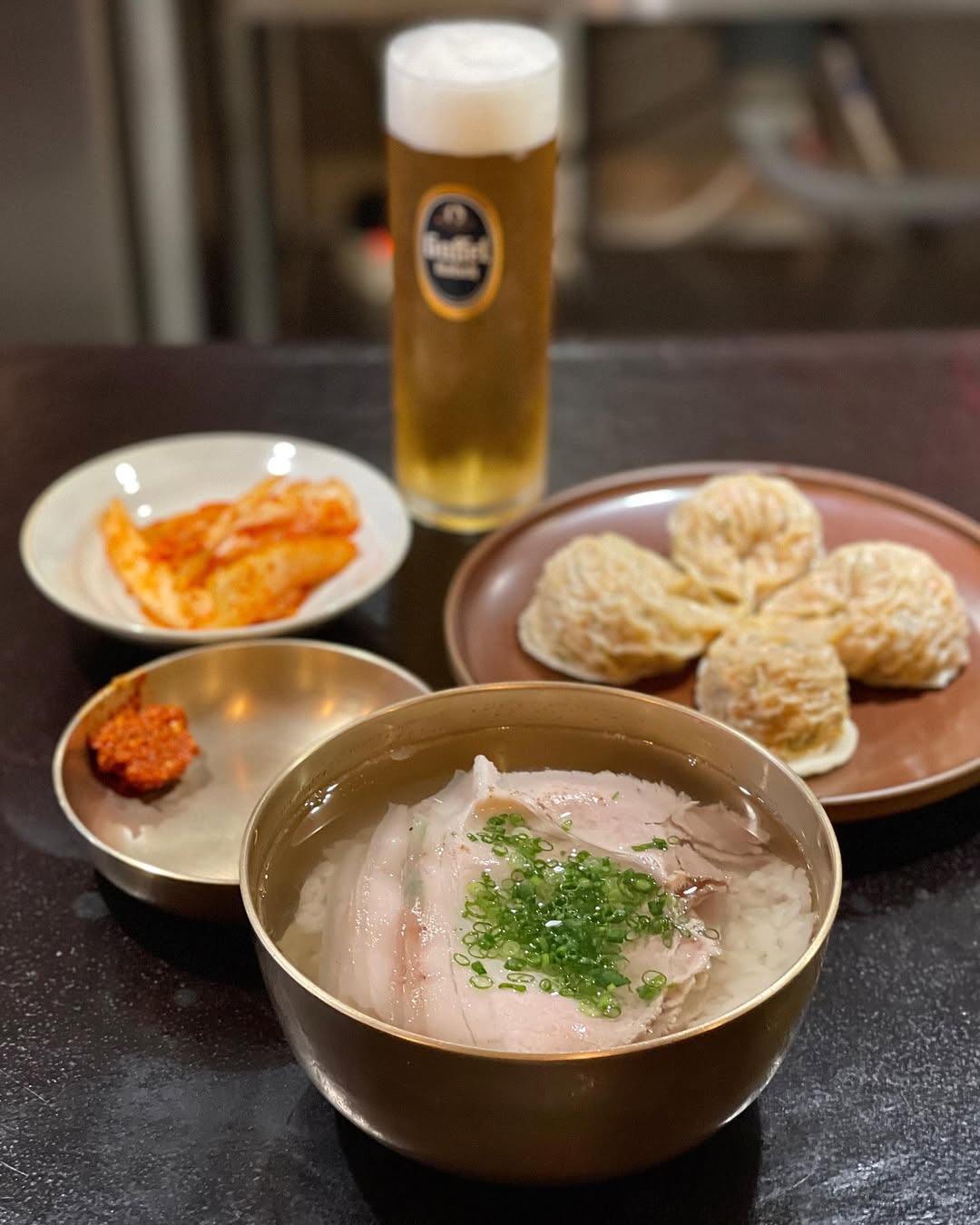 「屋同食」首爾店位在合井站 2 號出口,營業時間很長,正適合旅遊時用餐時間不一定的旅人,在冷冷的冬天吃一碗熱騰騰的湯飯,搭配辣辣的泡菜餃子,那是最美好的事。