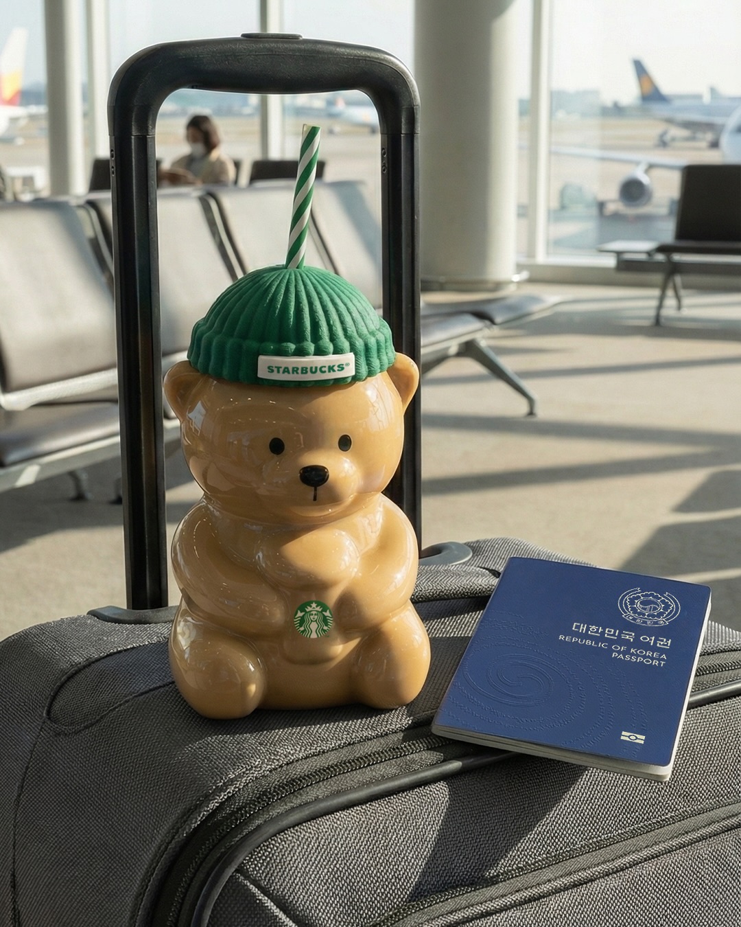 在美加掀起熱潮後,現在韓國也有這款熊熊玻璃杯了,官方社群文案還打上:「Bearista 在海外留學生涯成功,如今終於回歸。」,搭配上熊熊搭飛機的照片真是有夠可愛。