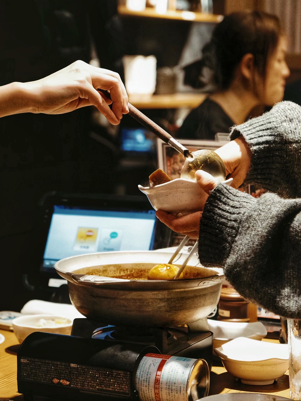 首先必點的是燉煮到極致入味的「名物大根」,這道關東煮靈魂之作吸飽了甘醇的高湯精華。接著上桌的是口感清爽解膩的沙拉,以及外皮酥脆、內裡多汁的各式揚物,每一口都能感受到精準的火候。而來到岐阜絕對不能放過頂級的「飛驒牛」!那油花分佈得像藝術品一樣,入口即化的油脂香氣在舌尖炸裂,展現出和牛特有的豐潤與鮮甜。在寒風刺骨的天氣裡,能窩在這樣一間熱氣騰騰、充滿飯菜香的溫暖餐廳裡大啖美食,看著職人在面前忙碌的身影,同時和身邊同行友人們痛快一杯一杯乾!那一刻,心裡充滿了感激。