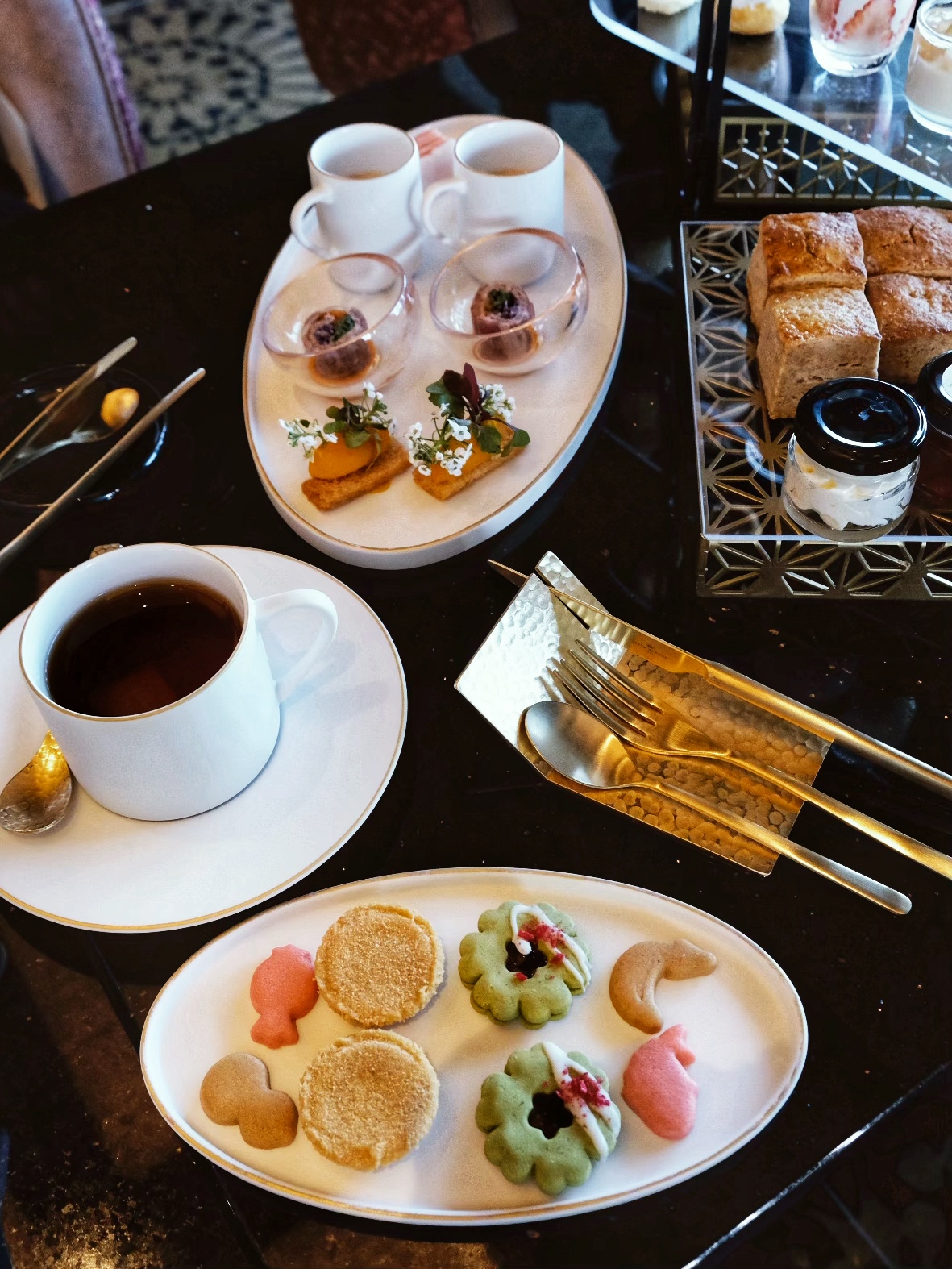 如果一晚 60 幾萬的房間住不下去,但花個台幣 2、3000 元喝場貴婦下午茶還是可以的。下午茶提供多種精選茶葉,會先遞上細緻的鹹點與熱騰騰的司康,接著是視覺超澎湃的多層甜點架。最棒的是,當你品嚐著精緻甜點,窗外就是近在咫尺的名古屋城景色,那樣的愜意,不需要 60 萬也可以體會。