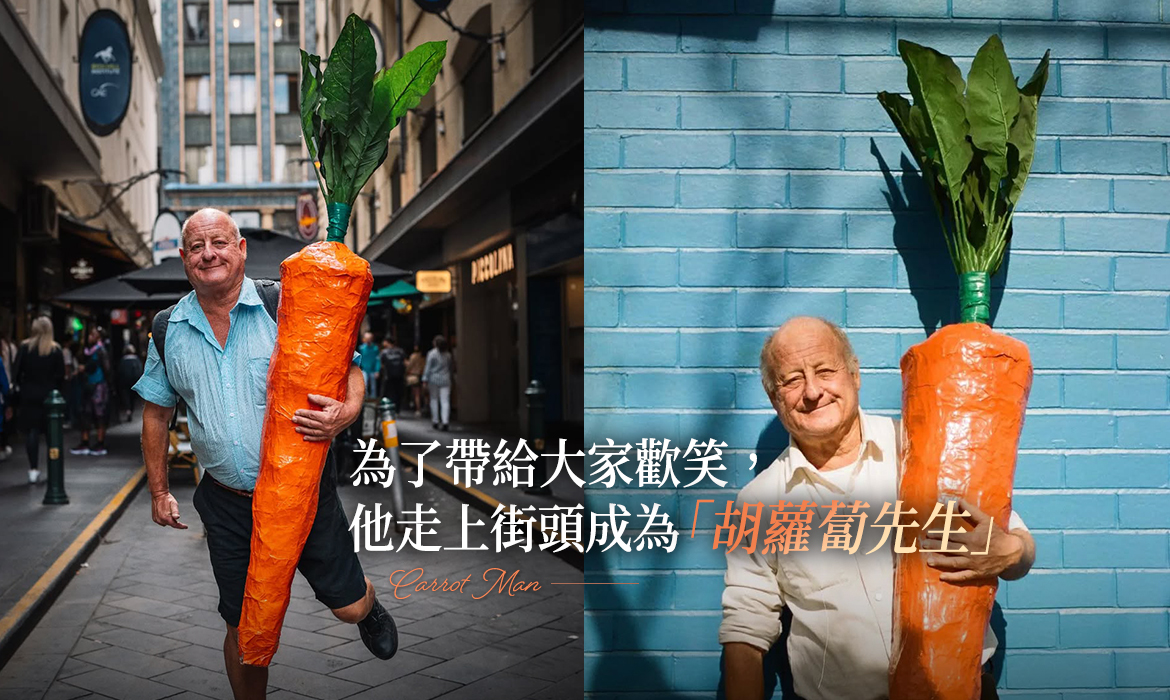 每天帶胡蘿蔔上街,彷彿卡通走出來的「胡蘿蔔先生」,是墨爾本街頭的溫暖傳奇