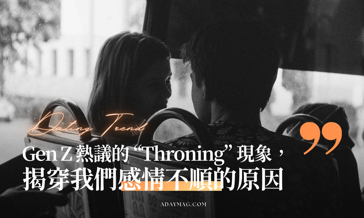 最近,歐美 Gen Z 正在熱烈討論一種叫 “Throning” 的約會心態,仔細研究它的意思後,讓人不禁感嘆,這會不會是現在分手與離婚率高居不下的原因之一?….…